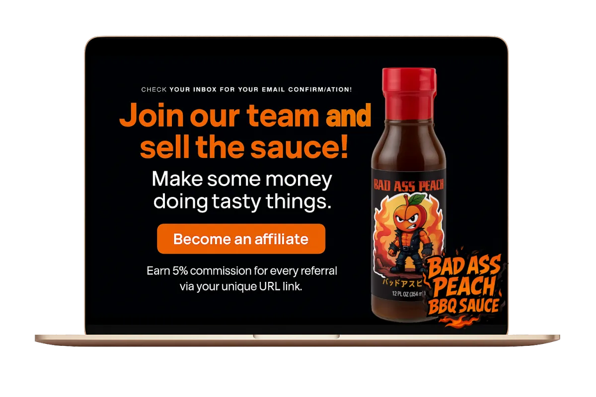Invite your friends, followers, or fellow food lovers to grab their own bottle of Badass Peach Barbecue Sauce — and every time they buy, you’ll earn 5% commission for life through your custom affiliate link.
